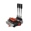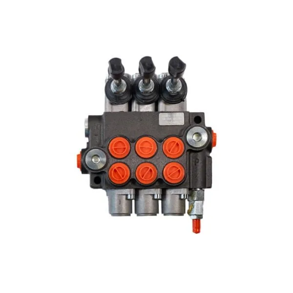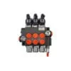Hydraulic distributor 03P40 - monobloc, providing the ability to control three-position levers, with a flow rate of 40 l/minute. It is distinguished by its robust and compact design, which allows it to be connected in series with other similar devices using a pressure sleeve. It is a three-section model, suitable for controlling single-acting and double-acting actuators. It also features high versatility and stable operation.