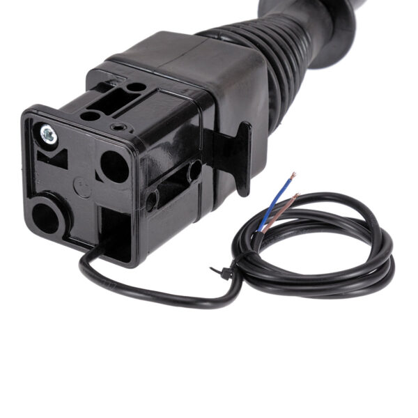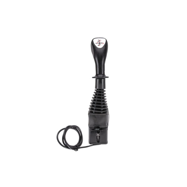 Joystick do sterowania rozdzielaczem za pomocą 2 linek na kulki. Joystick posiada 1 przycisk do sterowania elektrozaworem. Posiada blokadę - zabezpieczającą przed przypadkowym użyciem joysticka. Do joysticka pasują linki z kulkami o średnicy 14mm (najpopularniejsze).