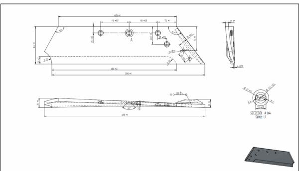 Lemiesz lewy Pług Maschio Gaspardo A51908100R stal borowa Agro-interstar. Wykonany ze stali borowej trudnościeralnej (SSAB Boron).