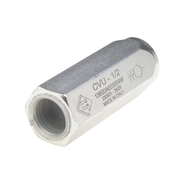 Zawór zwrotny CVU-1/2 cala (jednokierunkowy) do 60L. Zawór zwrotny CVU (jednokierunkowy) dzięki niskiemu ciśnieniu otwarcia umożliwia swobodny przepływ oleju w jednym kierunku i zabezpiecza układ przed cofaniem się w kierunku przeciwnym.