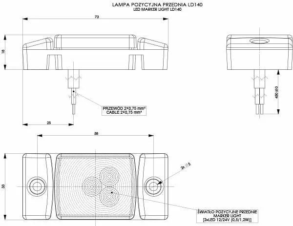 | Przewód | 2×0,75 mm2; długość przewodu 0,45 m |