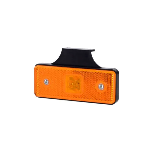 Lampa obrysowa prostokątna z odblaskiem, pomarańczowa z wieszakiem z mocowaniem za lampą.