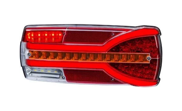 Carmen (LZD 2401/prawa) to 7-funkcyjna ledowa lampa zespolona tylna z czerwonymi nakładkami na światło hamowania. Lampa Carmen wyposażona jest w dynamiczny kierunkowskaz oraz światło pozycyjne NEON. Oświetlenie tablicy rejestracyjnej zasilane osobnym przewodem, co umożliwia podłączenie tego światła niezależnie od światła pozycyjnego.