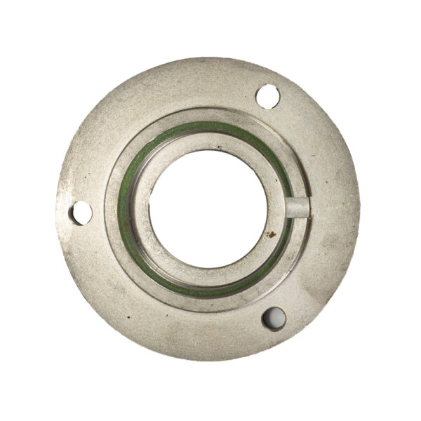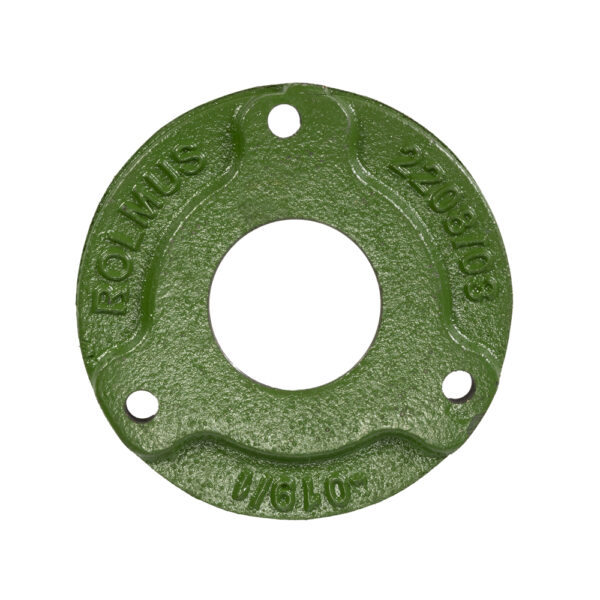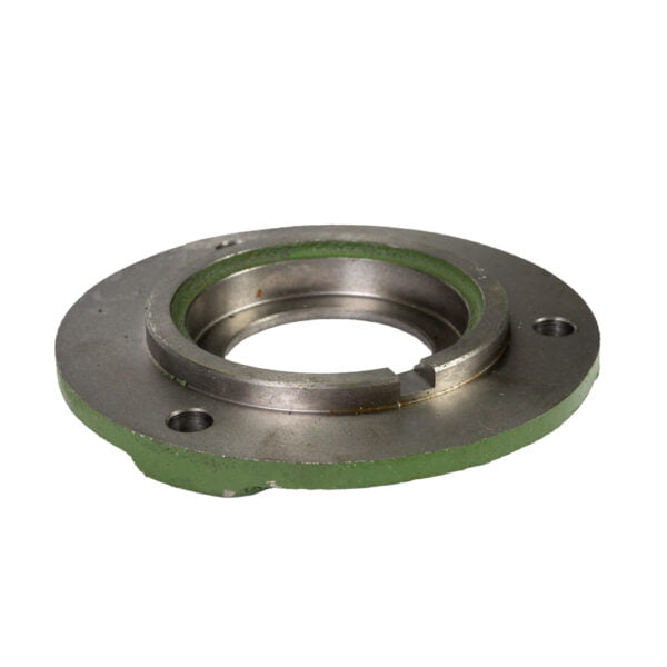 Duża pokrywa łożyska rozrzutnika z otworem 46 mm jest wykonana z żeliwa. Jest to materiał znany ze swojej wyjątkowej wytrzymałości i odporności na uszkodzenia, dlatego  bywa często wykorzystywany do produkcji części do maszyn rolniczych, Żeliwo charakteryzuje się wysoką odpornością na ścieranie i pęknięcia. Jest to szczególnie ważne w środowisku rolniczym, gdzie pokrywa łożyska do rozrzutnika oraz inne elementy są narażone na ciężkie warunki pracy, w tym kontakt z agresywnymi substancjami, takimi jak obornik oraz na siły mechaniczne. Pokrywa łożyska rozrzutnika żeliwna, duża, z otworem 46 mm jest niezbędna do utrzymania długotrwałej i bezawaryjnej pracy maszyny, zwłaszcza w warunkach intensywnej eksploatacji.
