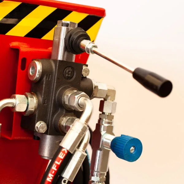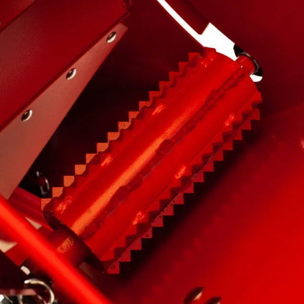 Ten model rozdrabniacza do drewna wyposażono w hydrauliczny wałek podający. Dzięki temu praca z maszyną jest prostsza i mniej angażująca siłowo — wystarczy włożyć materiał do podajnika, a wałek przesunie go dalej. Obecność wałka wpływa też na pracę samego urządzenia, czyniąc ją bardziej wydajną.
