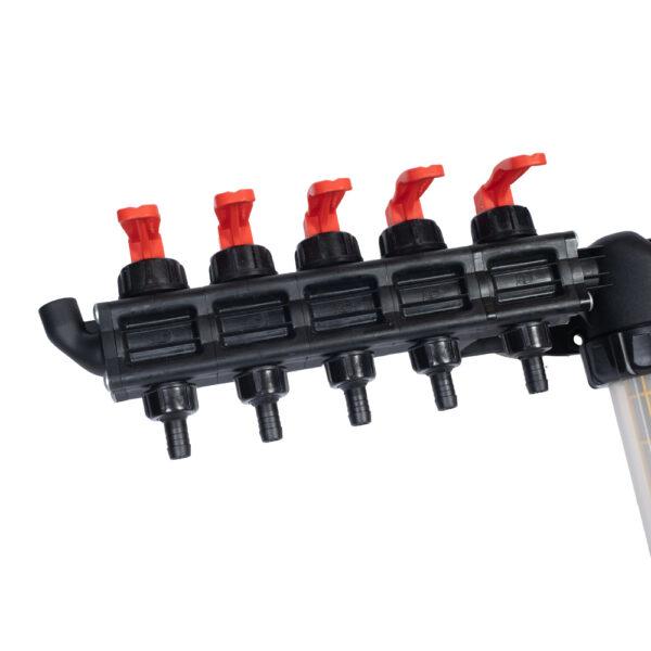 Rozdzielacz 6 sekcyjny HD. Został wyposażony w specjalnie wzmocnione kopolimery, które zapewniają wysoką odporność na uszkodzenia mechaniczne, czy uszczelnienia wykonane z Verdesilu – innowacyjnego materiału na bazie silikonu o zwiększonej pamięci kształtu, który zapewnia długotrwałą pracę bez przeciekania. Rozdzielacz wyróżnia największa powierzchnia filtrująca w porównaniu do innych urządzeń tego typu. Dodatkowo, zastosowaliśmy sito filtra ze stali kwasoodpornej do wyboru w trzech gęstościach – MESH 50, MESH 80 oraz MESH 100.