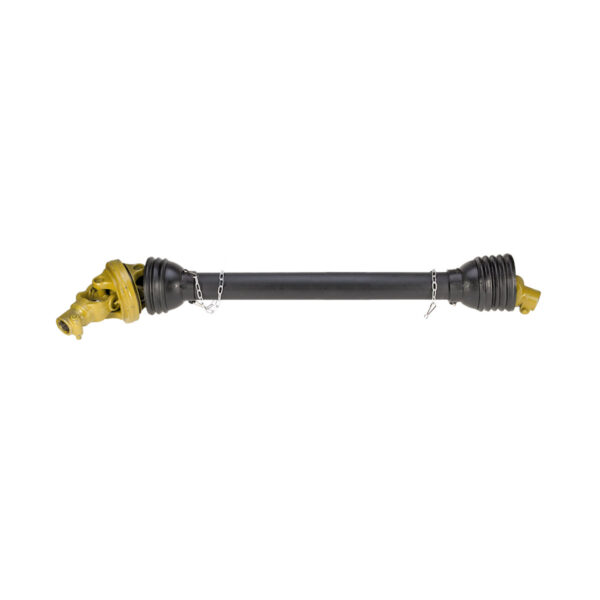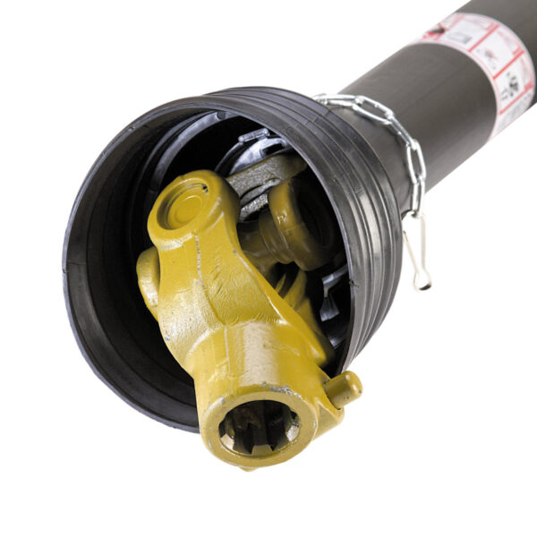 Solidna rura trójkątna oraz wzmocnione krzyżaki gwarantują trwałość i odporność na przeciążenia typowe dla maszyn rolniczych. Wałek przenosi moment do 500 Nm, co odpowiada maszynom o zapotrzebowaniu mocy około 60 KM. Standardowe mocowania 1 3/8" Z6 (6/6) zapewniają szybki montaż i kompatybilność z większością popularnych urządzeń napędzanych wałkiem WOM — od kosiarek rotacyjnych, przez glebogryzarki, po zgrabiarki i rozrzutniki. Wał szerokokątny umożliwia możliwość pracy maszyny na zakrętach bez konieczności odłączania napędu WOM (kąt do 80 stopni).