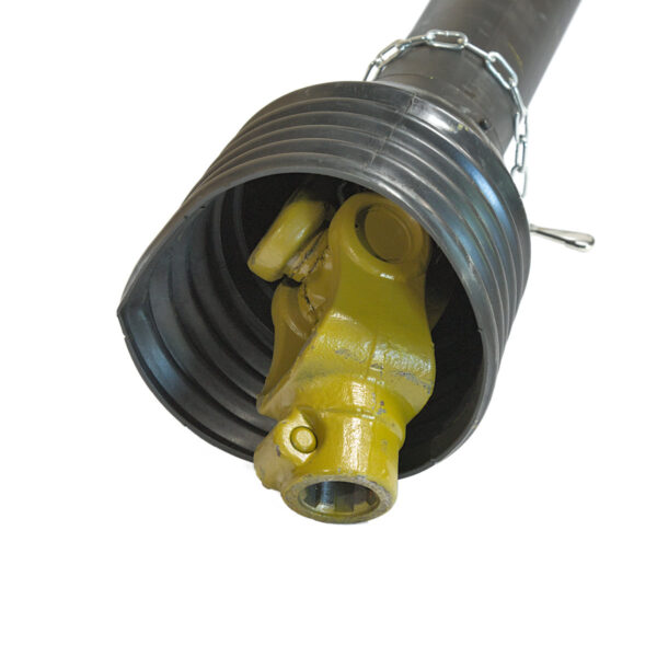 Solidna rura trójkątna oraz wzmocnione krzyżaki gwarantują trwałość i odporność na przeciążenia typowe dla maszyn rolniczych. Wałek przenosi moment do 830 Nm, co odpowiada maszynom o zapotrzebowaniu mocy około 80 KM. Standardowe mocowania 1 3/8" Z6 (6/6) zapewniają szybki montaż i kompatybilność z większością popularnych urządzeń napędzanych wałkiem WOM — od kosiarek rotacyjnych, przez glebogryzarki, po zgrabiarki i rozrzutniki. Wał szerokokątny umożliwia możliwość pracy maszyny na zakrętach bez konieczności odłączania napędu WOM (kąt do 80 stopni).