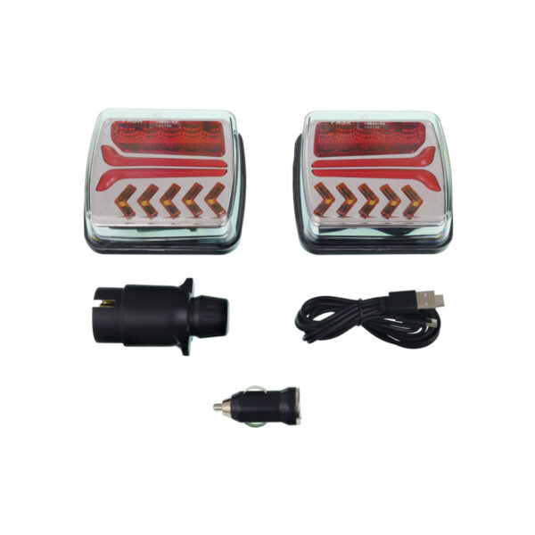 Zestaw świateł na magnes lampy LED kierunek dynamiczny 12/24V 7-PIN Wi-Fi. Zestaw świateł bezprzewodowych z wysokiej jakości lampami - kierunkowskaz dynamiczny. Zasięg 30m - pozwala na zastosowanie lamp w każdym rodzaju przyczepy, przyczepki lub maszyny rolniczej. Zestaw zabezpieczony w ergonomicznej walizce - co jest dodatkowym zabezpieczeniem przed uszkodzenie. Ładowarka USB 5V w zestawie. Czas pracy do 8 godz.