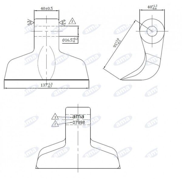 Bijak młotkowy MASCHIO BERTI SAMASZ 137x40x16,5 R-95mm 07398APL