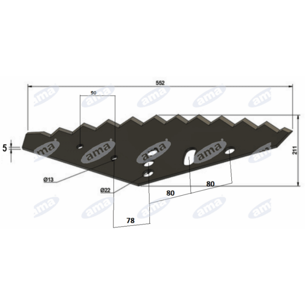 Nóż do paszowozu PRONAR VMP10 552x211x5 średnica otworu 22 mm 407-005-001481